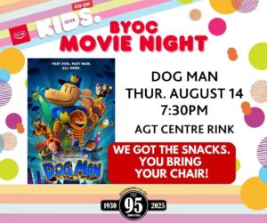 Riverbend Co-op’s 95th Anniversary Celebration continues with a Movie Night at the AGT Centre in Davidson.